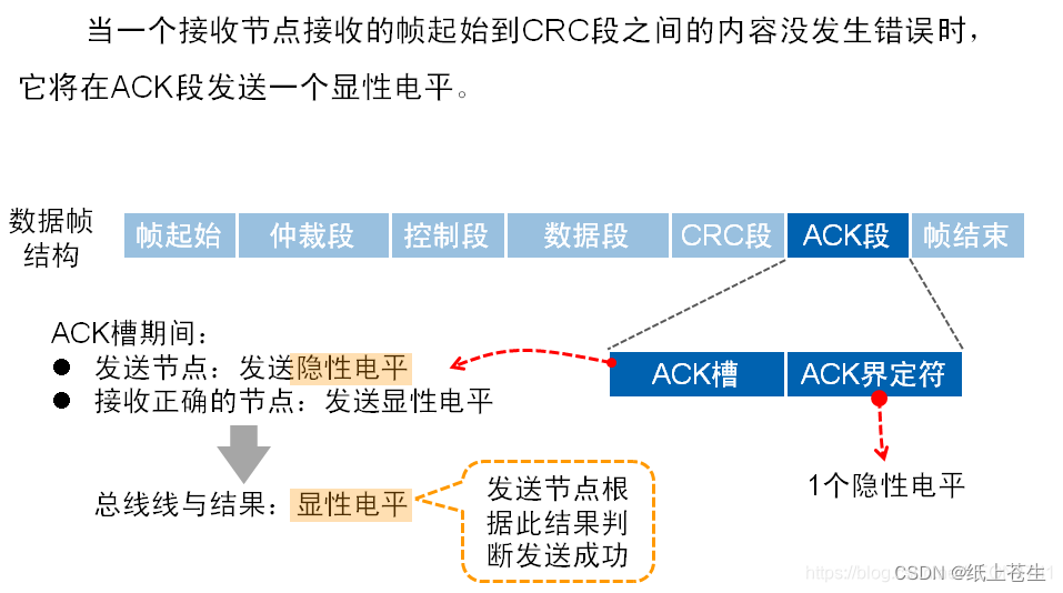 - 发送确认:发送完成后,控制器等待其他节点的确认。如果未收到确认,将重试发送。