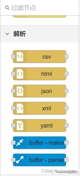 安装完成之后,在工作区左侧的面板中多了buffer-maker和buffer-parser两个蓝色的节点。