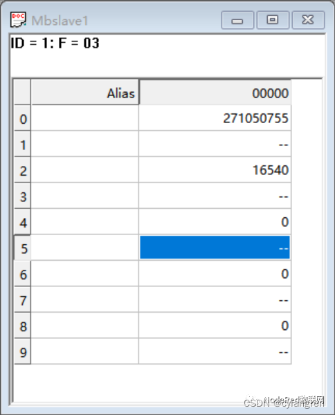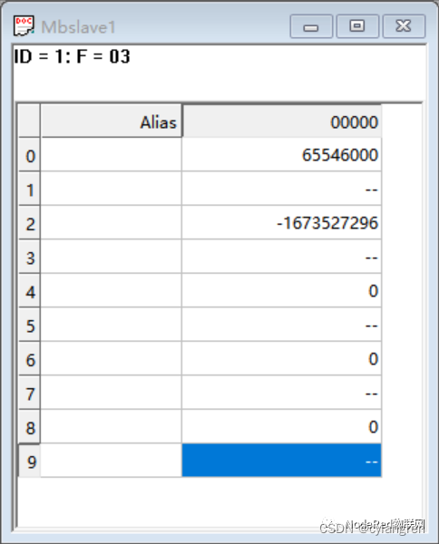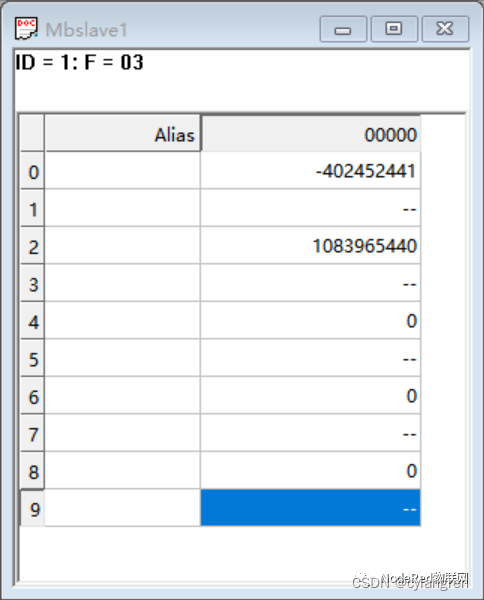将Modbus Slave软件中的寄存器编码类型设置为LongBADC,此时寄存器的值变成了-402452441和1083965440。