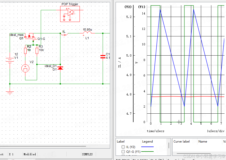 simplis搭建BUCK的理想仿真电路,暂态,POP分析。BUCK相关参数计算,异步情况。