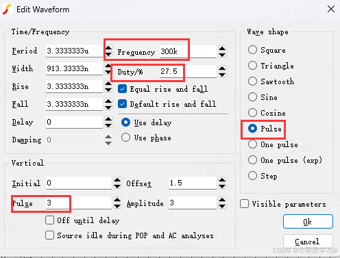 其中的Maximum period中参数必须大于开关周期但是建议不要大于开关周期的两倍,在这里设置为开关周期的1.1倍