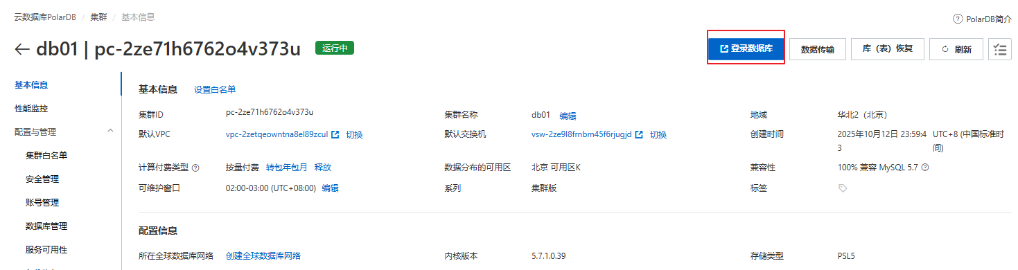 阿里云数据库PolarDB的简单使用