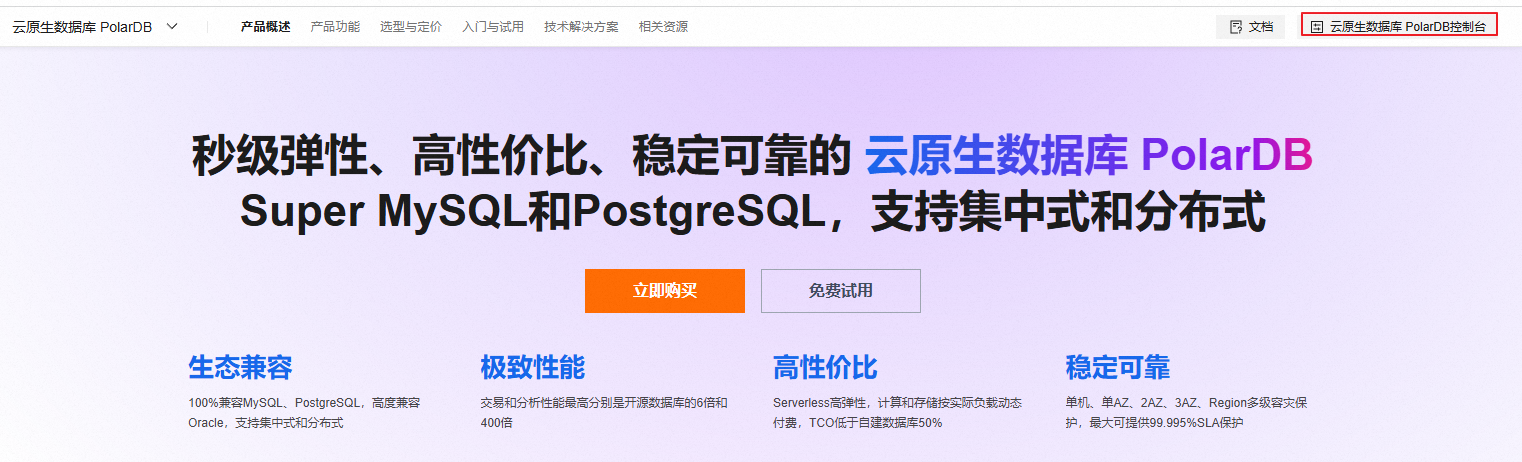 阿里云数据库PolarDB:特性、主要产品、应用场景、单节点PolarDB使用