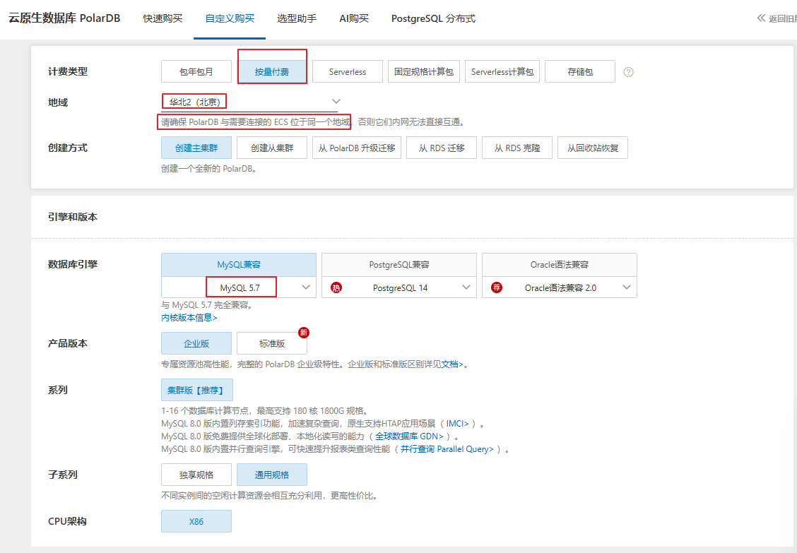版本选择:如果业务数据量大但并发尚未达到极限,且希望未来能平滑扩展,可考虑 PolarDB-X 标准版;若已面临高并发和海量数据挑战,则直接选择 PolarDB-X 企业版。