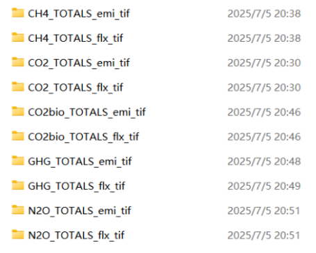 文件的名称后缀为" _flx"代表该气体的排放通量,以kg substance /m2 /s(千克/平方米/秒)为单位