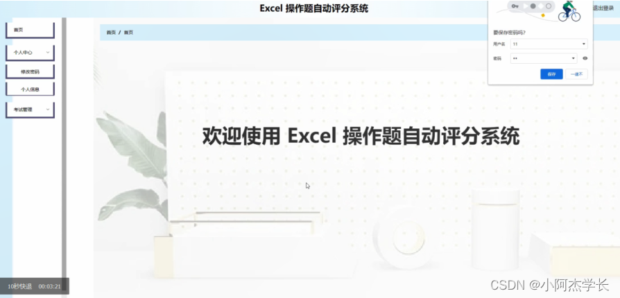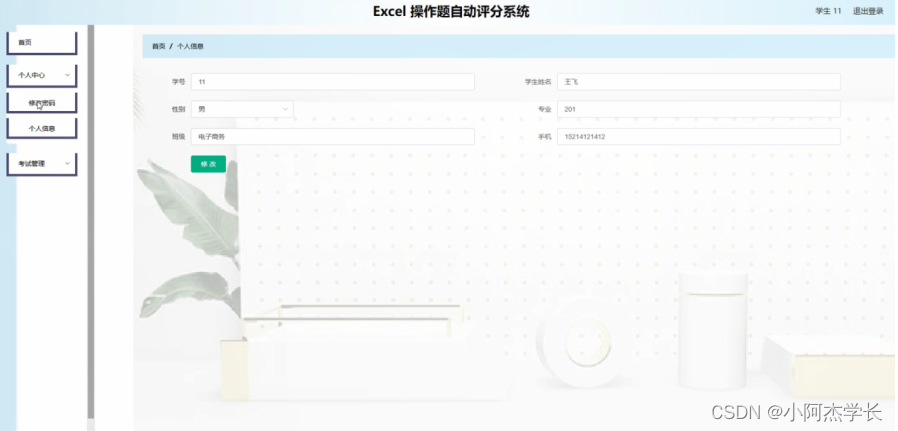 学生登录进入系统可以查看首页,个人中心,考试管理等内容,并进行详细操作;如图4-10所示。