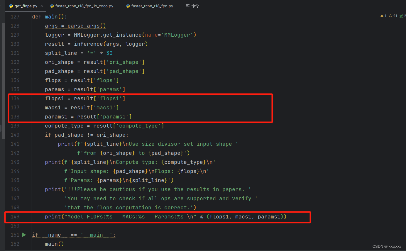 然后在get_flops.py中直接添加代码并将结果加入到result中,为了避免变量重名可以稍微修改加个后缀: