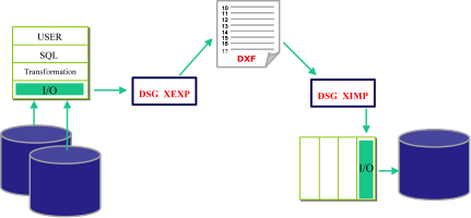 其过程不是对数据库底层的存储数据块进行复制,而是将源系统上的已有数据记录从datafile中直接读取并解析成为DXF数据格式,在利用XIMP将DXF数据批量快速装载到Data target系统上。