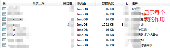 使用场景:在没有文档的情况下,查看所有表名是做什么的时候,很不方便。