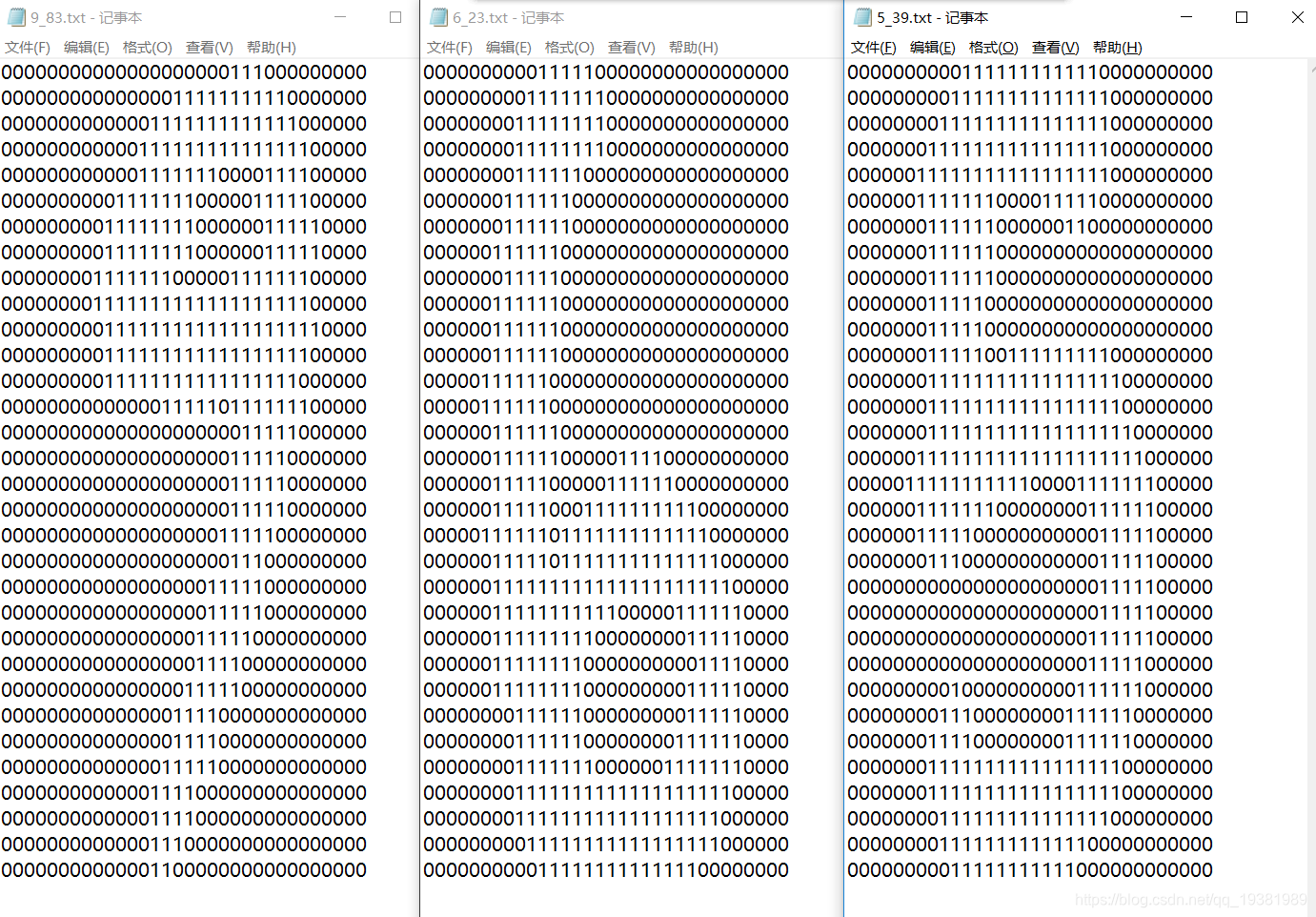 数据集即为32*32像素点,且用二进制表示出来了数字的形状;