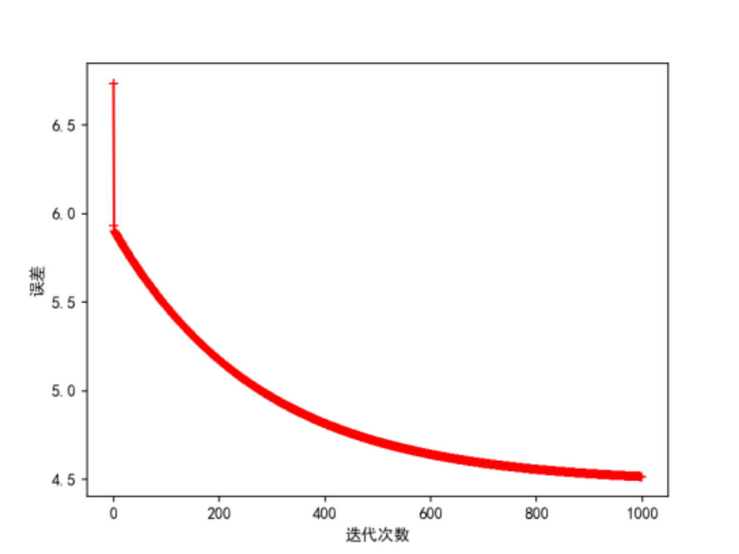 5.采用上述批量梯度下降法,优化单变量线性回归模型。其中,迭代轮数epoch设定为1000轮,学习率设定为 0.01,参数初始化为0。