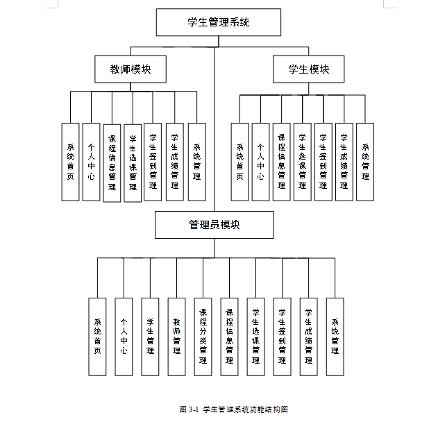 系统结构图可以把杂乱无章的模块按照设计者的思维方式进行调整排序,可以让设计者在之后的添加,修改程序内容的过程中有一个很明显的思维方向。同时结构图还可以让设计者以外的其他人更直观的看出整个系统的设计理论和设计过程。让系统的设计变的更直观。该系统的功能架构图如图3-1所示: