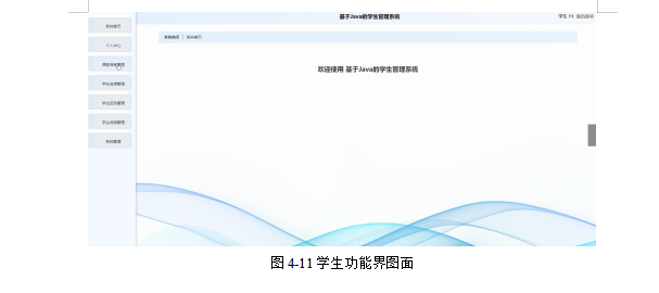 学生登录系统后,可以对系统首页、个人中心、课程信息管理、学生选课管理、学生签到管理、学生成绩管理、系统管理等功能进行相应操作,如图4-11所示。