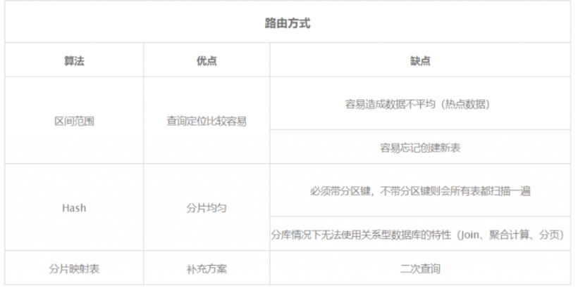 每种路由方式都有自己的优点和缺点,可以根据对应的业务场景进行选择。区间范围根据某个元素的区间的进行拆分,以时间为例子,假如有个业务我们希望以月为单位拆分那么表就会拆分像 table_2022-04,这种对于文档型、ElasticSearch 这类型的 NoSQL 也适用,无论是定位查询,还是日后清理维护都是非常的方便的。