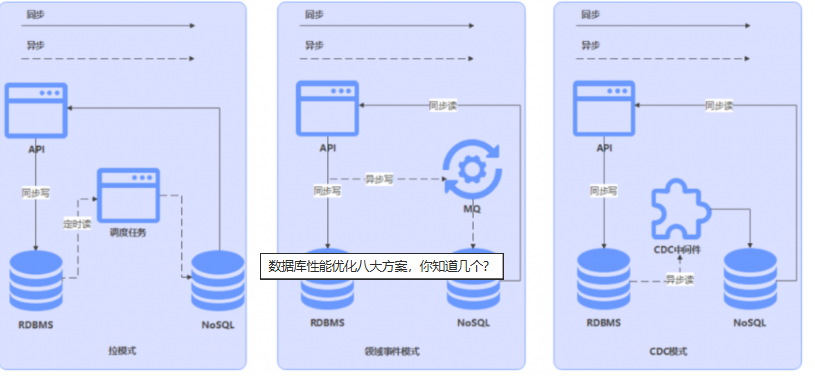 因此本类型的方案主要有两种:CQRS、替换(选择)存储,这两种方案的最终本质基本是一样的主要使用合适存储来弥补关系型数据库的缺点,只不过切换过渡的方式会有点不一样。