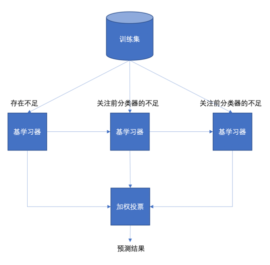 Adaptive Boosting(自适应提升)基于 Boosting思想实现的一种集成学习算法,核心思想是通过逐步提高那些被前一步分类错误的样本的权重来训练一个强分类器。