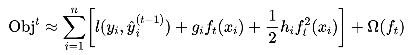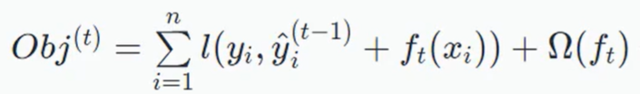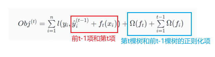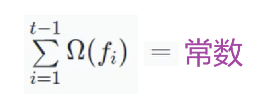 请注意,我们是在求解第t棵树的损失函数,也就意味着,前t-1棵树已经构建完毕了,因此,前t-1棵树的正则化项可以视为常数,即: