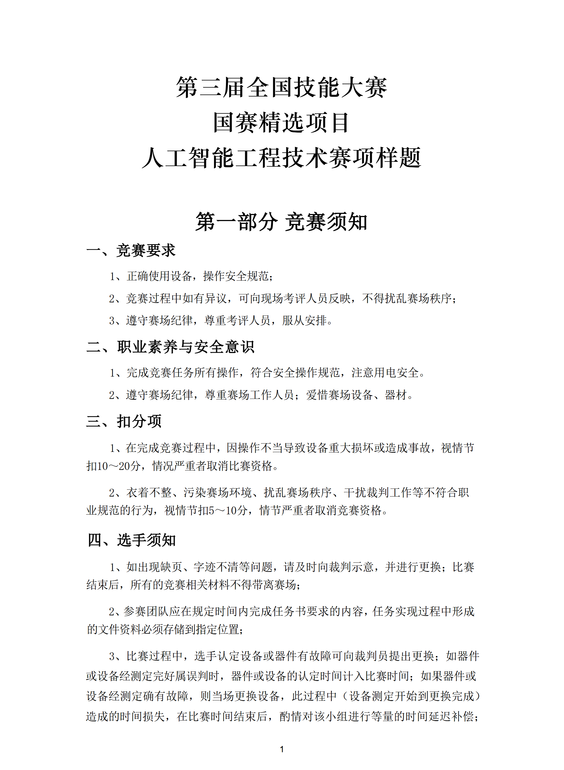 之前共享了第二届全国技能大赛的样题和技术文件,在这篇博客中将和大家分享中华人民共和国第三届职业技能大赛(第三届全国技能大赛)人工智能工程技术赛项的样题,感兴趣的朋友可以下载。
