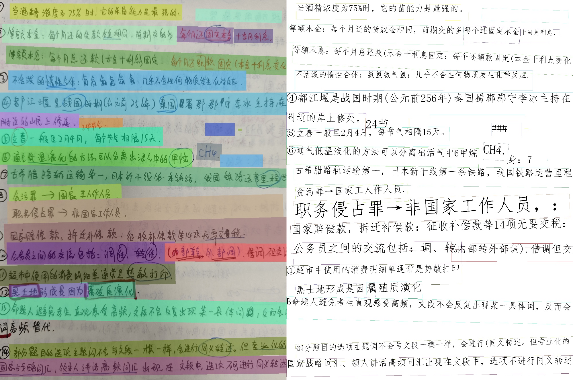 OK,上点难度朋友们。我直接问我对象要了一份手写的考公笔记来测试,大家可以放大来看看效果。