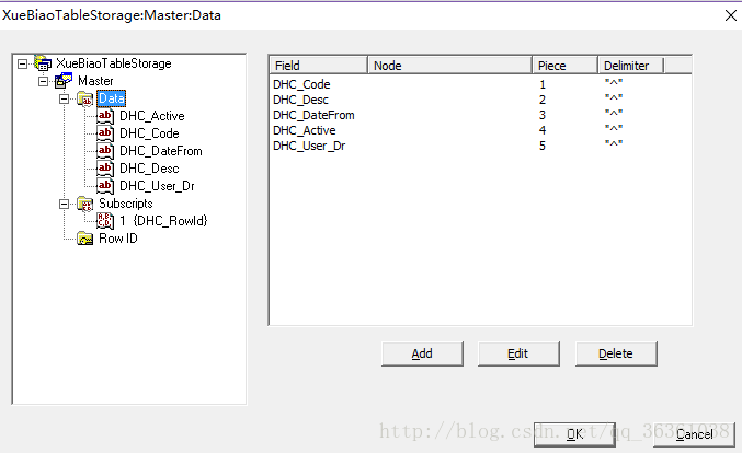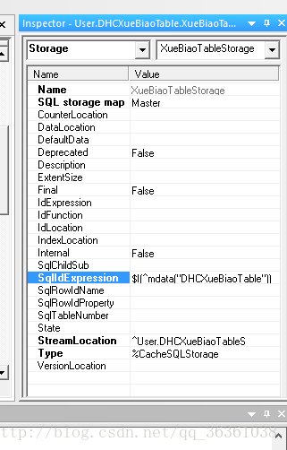 4,基本建立完成,最后提示下在SqlldExpression后面设置这个:$I(^mdata("DHCXueBiaoTable")),设置这个主要是为了在向表添加数据库的时候rowId 会自动增长。