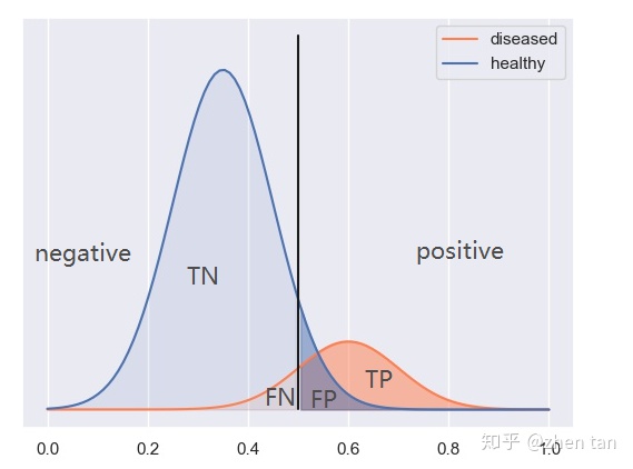 大样本上看,无论是病人分布还是健康人群的分布,都符合正太分布,所以,一种划分如下:
