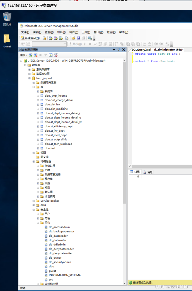 3.创建与源SqlServer(与用户名相同)同名的模式,属主为相同;
