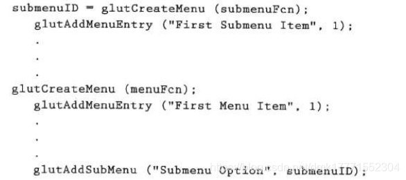 glutAddSubMenu函数也可以用来将子菜单添加到当前菜单。