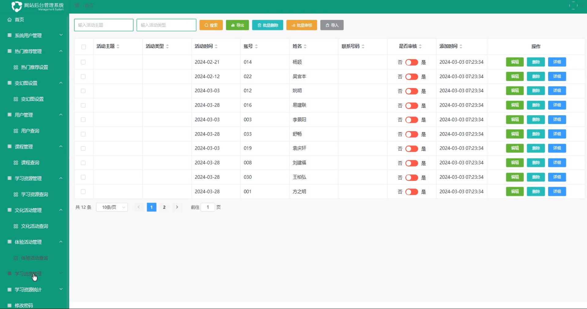 热门推荐管理:管理员可以设置热门推荐的课程或资源,将其展示在系统首页等显眼位置,引导用户关注热门内容。