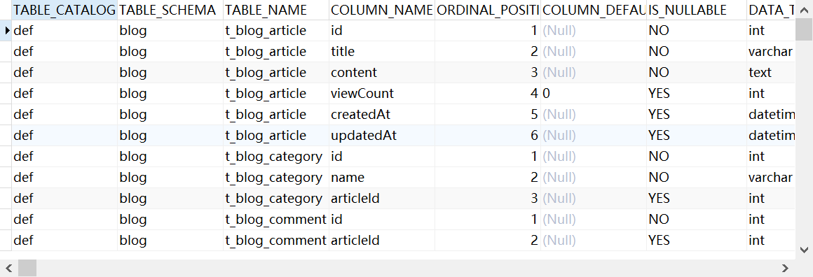 select * from information_schema.columns where table_schema='blog'