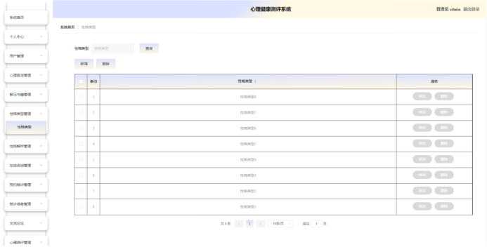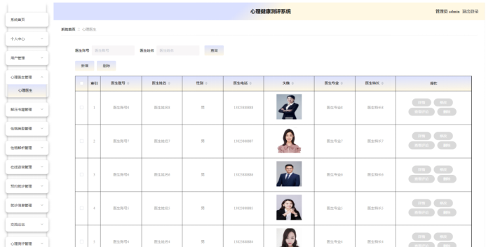 心理医生管理:管理员可以对心理医生的信息进行管理,包括查询、新增、修改和删除。