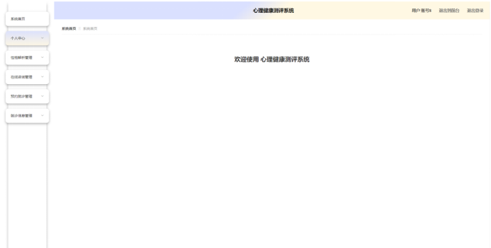 个人中心:用户可以查看和更新个人信息,管理自己的测评记录、预约信息等。