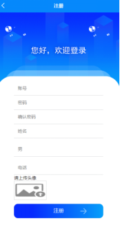 第一次使用本小程序的使用者,首先是要进行注册,点击“注册”,然后就会进入到注册的页面里面,将用户信息录入注册表,确认信息正确后,系统才会进入登录界面,用户登录成功后可使用本小程序所提供的所有功能。注册界面如图5-1所示。