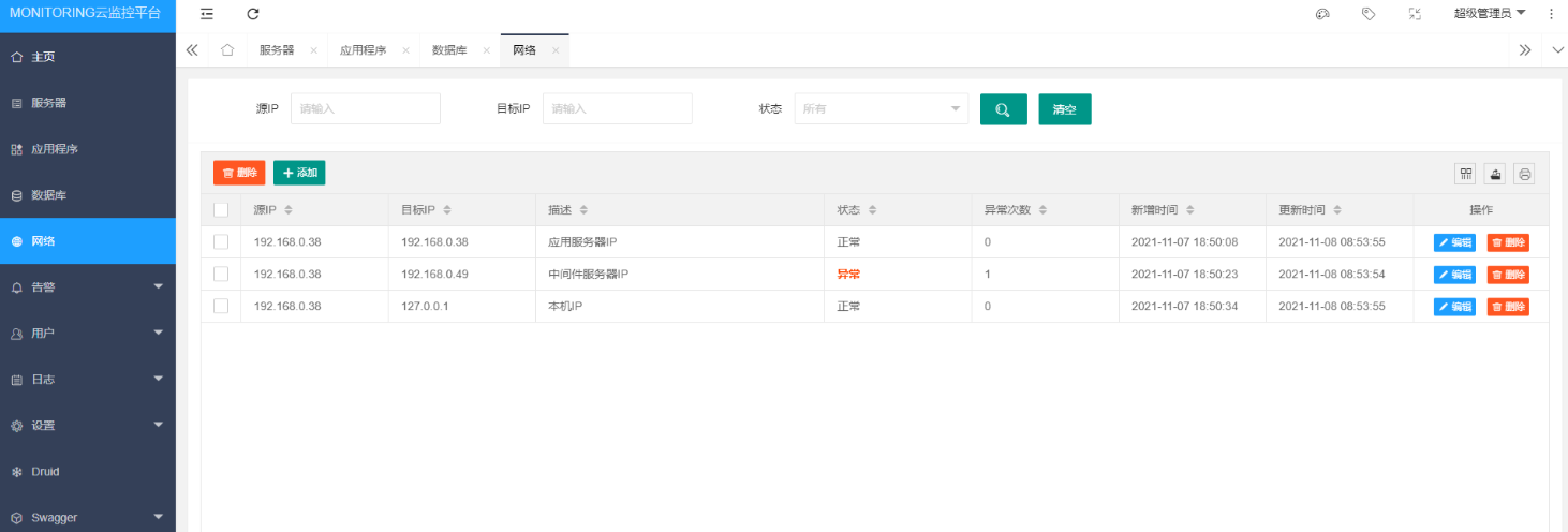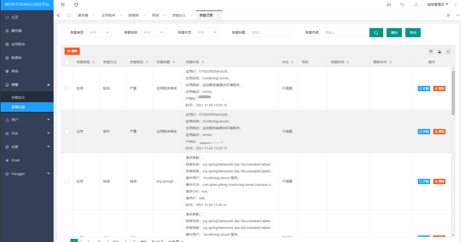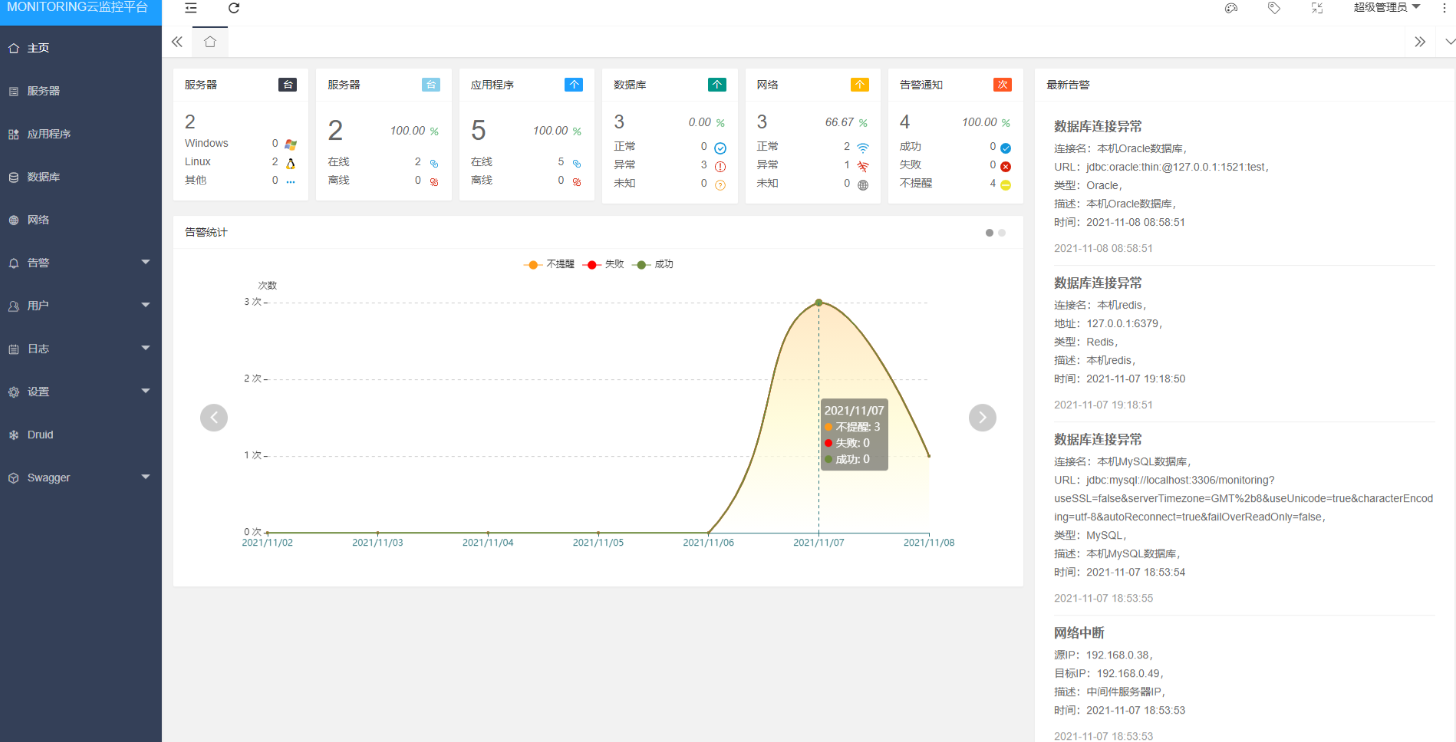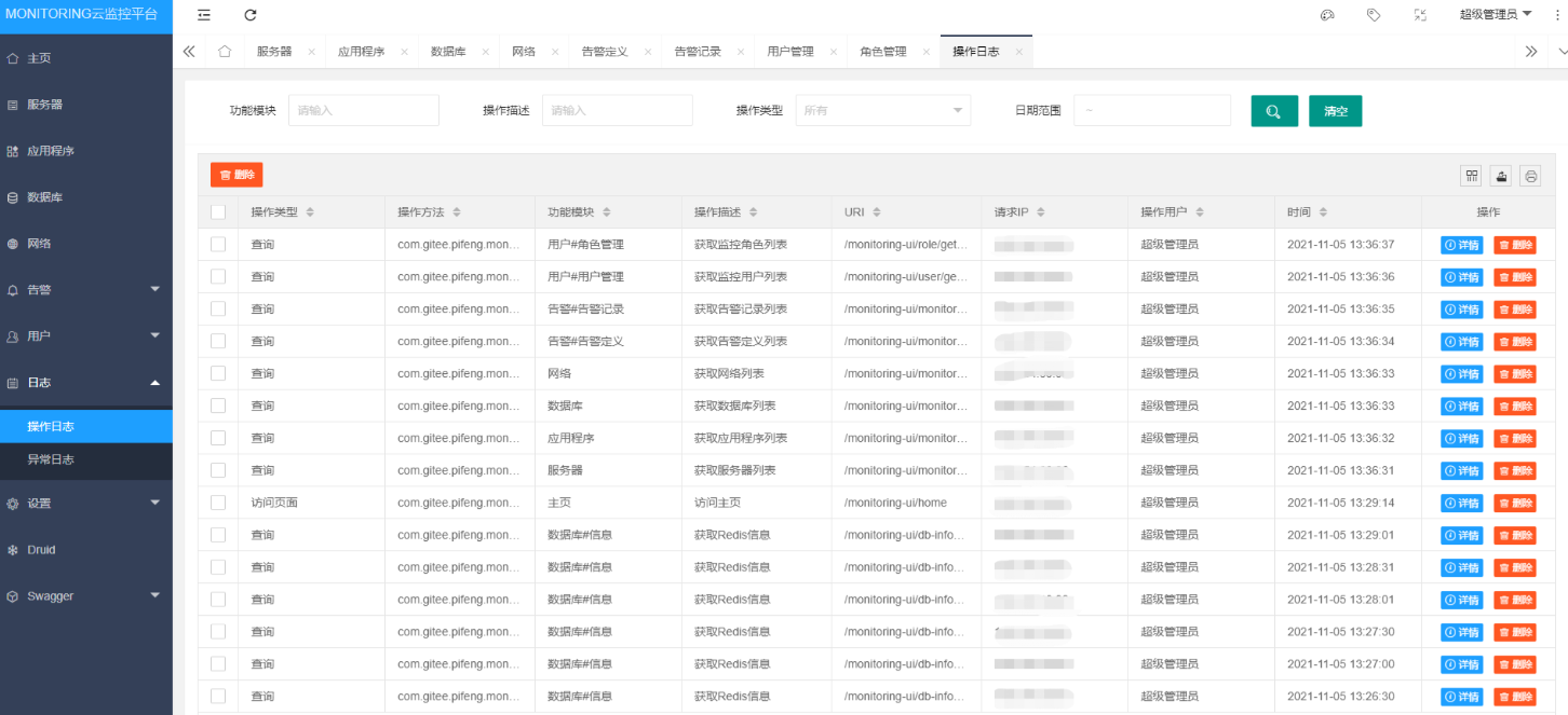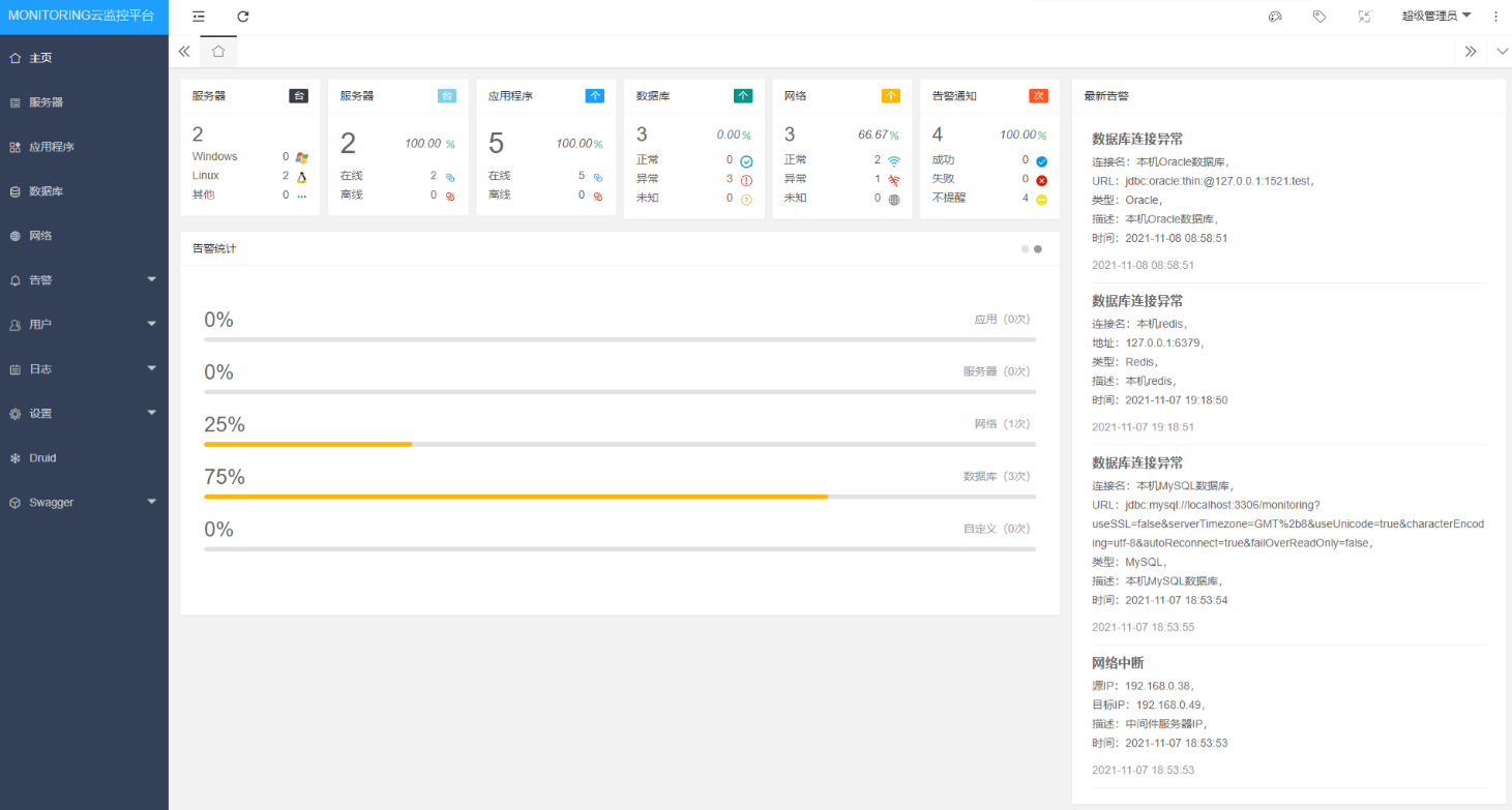 今天小编推荐一个灵活可配置的开源监控平台,主要用于监控应用程序、服务器、数据库和网络,通过实时收集、汇聚和分析监控信息,实现在发现异常时立刻推送告警信息,并且提供了可视化系统进行配置、管理、查看。 产品在设计和开发阶段,大量参考了北方的物业管理和工作模式,忽略了南方的情况,目前我也正在收集和整理需求,后续会陆续对功能完善升级。开源协议 使用 GPL-3.0 开源许可协议链接地址 公众号【
