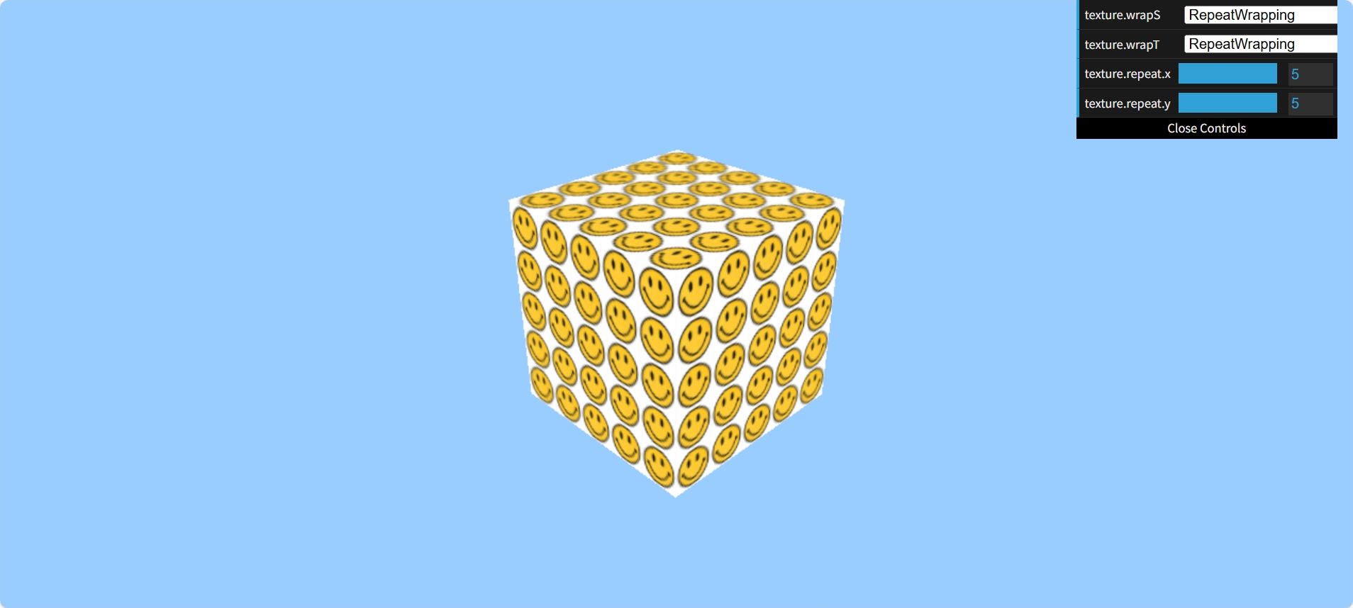 gui.add(textureMap.repeat, 'y', 0, 5, 0.01).name('texture.repeat.y');