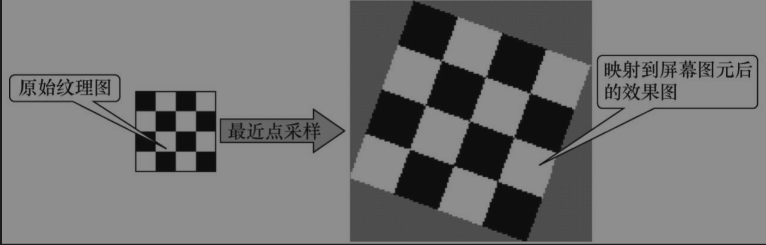 最近点采样是最简单的一种采样算法,在各种采样算法中其速度也是最快的,原理即:选择中心点最接近纹理坐标的那个像素的颜色值为采样值。