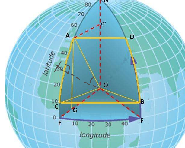 ∆lat,由于AO=CO(都是地球半径),则AX=