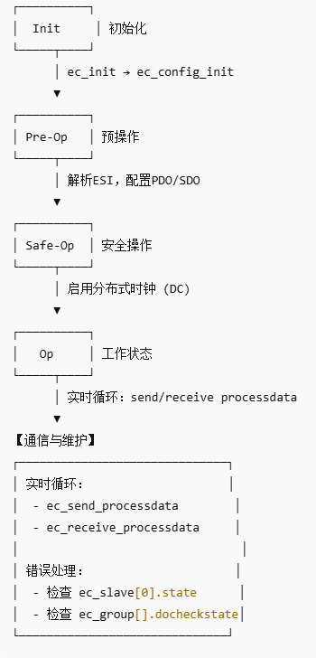 4. 进入实时操作状态:ec_state_check -> 切换到OP状态。指挥棒举起,准备开始。