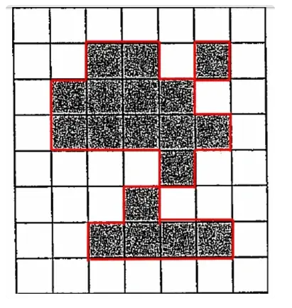 对于上图,4连通意义上可分成独立的三个区域,在8连通意义上只有一个区域。