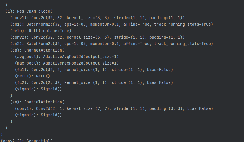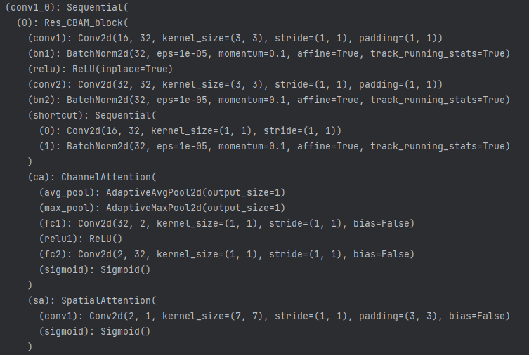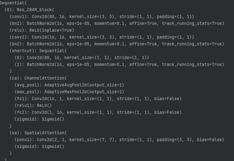 就是一个残差块串联上通道和空间注意力。计算公式体现成代码为: