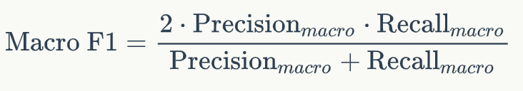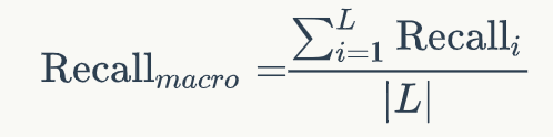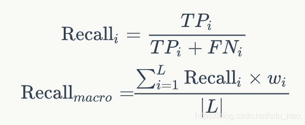 分别计算第i类的Precision、Recall和F1-score(把第i类当作正类,其余所有类统一为负类),然后进行平均(假设总共有L个类):