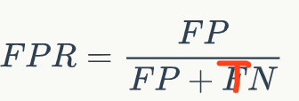 FPR: False Positive Rate, 假正率, FPR代表将负例错分为正例的概率(真实为负类的所有样本中,预测(错分)为正类的占多少)
