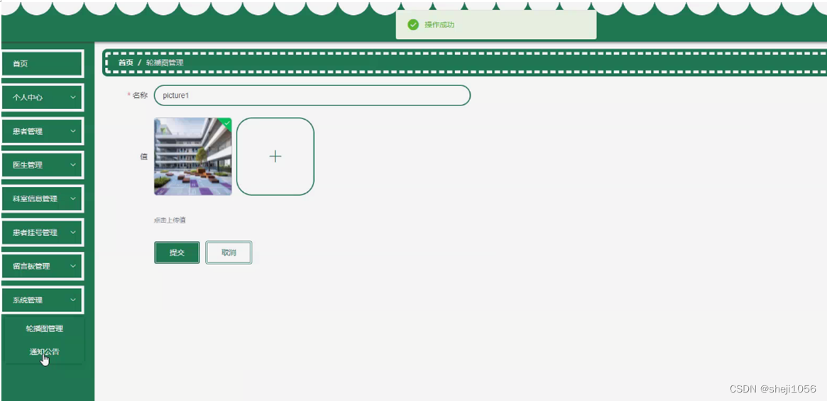 在系统管理页面,管理员可以对轮播台管理、通知公告进行需要操作,如图5-13所示。