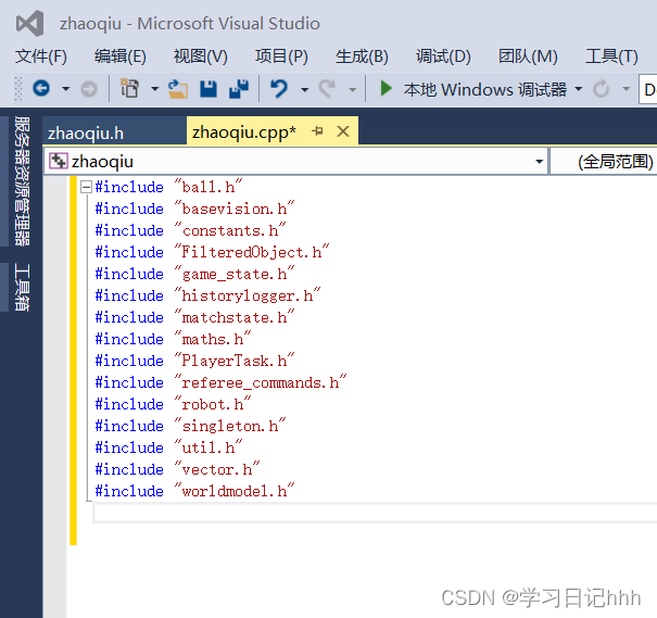 我最开始以为是我没有创建zhaoqiu.h文件,我创建了之后发现还是报错,于是问了群里面