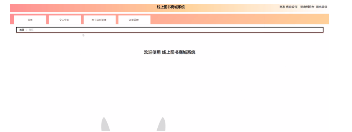 商家点击登录摁钮页面跳转到线上图书商城系统查看首页、个人中心、图书信息管理、订单管理等内容,进行相应操作,如图5-9所示。