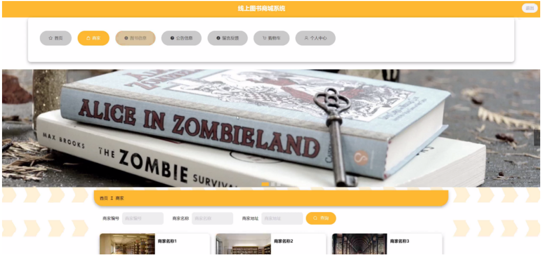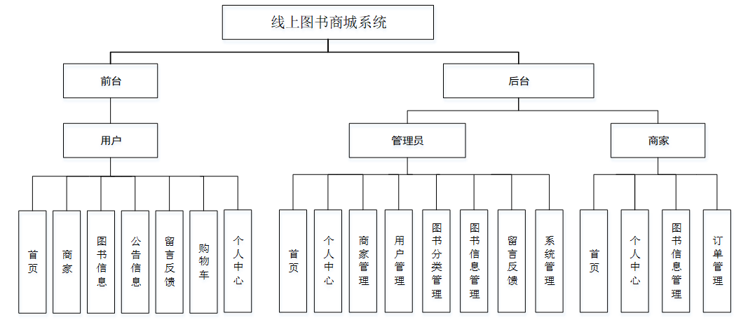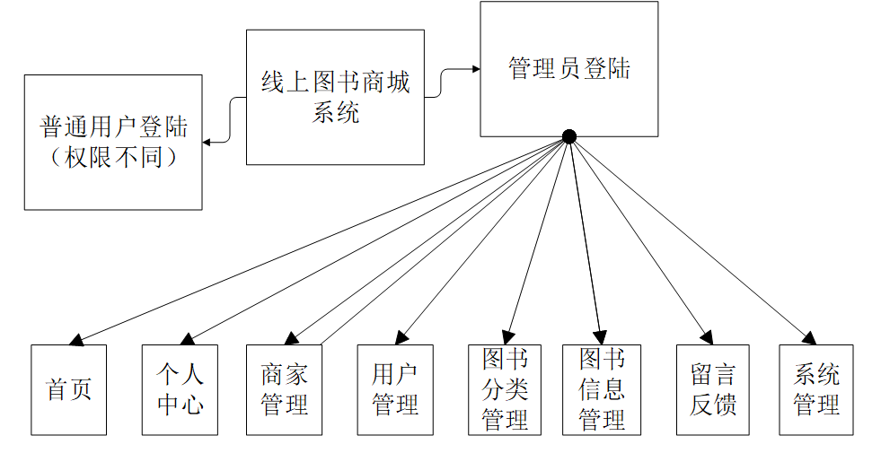 本课题要求实现一套线上图书商城系统,系统主要包括管理员模块和用户、商家模块功能模块。