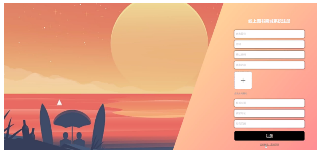 在系统后台商家点击注册/登录按钮,在注册、登录界面填写信息完成后,单击注册或者登录操作,如图5-7 5-8所示: