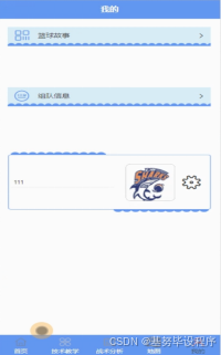 用户登录成功后,点击“我的”进入我的页面,在我的页面可以对篮球故事、组队信息、个人中心等进行详细操作。用户功能界面如图5-6所示。