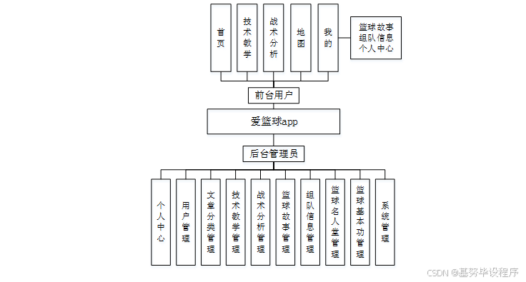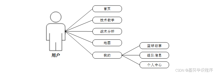 爱篮球APP的设计充分考虑了篮球爱好者的多样化需求。通过用户管理功能,用户可以轻松创建和维护个人账号;篮球资讯和技术教学模块为用户提供了丰富的学习资源;战术分析和篮球故事模块则进一步提升了用户的篮球知识水平。此外,组队信息和篮球名人堂功能增强了用户的社交互动性,使用户能够更好地融入篮球社区。系统管理功能则为平台的稳定运行提供了保障。通过这些功能的整合,爱篮球APP不仅为用户提供了一个学习和交流的平台,还促进了篮球文化的传播和发展。