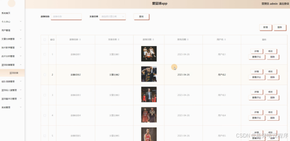 篮球资讯管理:提供最新的篮球赛事资讯、新闻动态,用户可以随时查看最新的篮球信息。