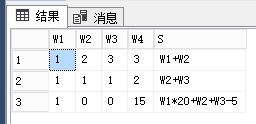 SELECT 1,0,0,'W1*20+W2+W3-5'